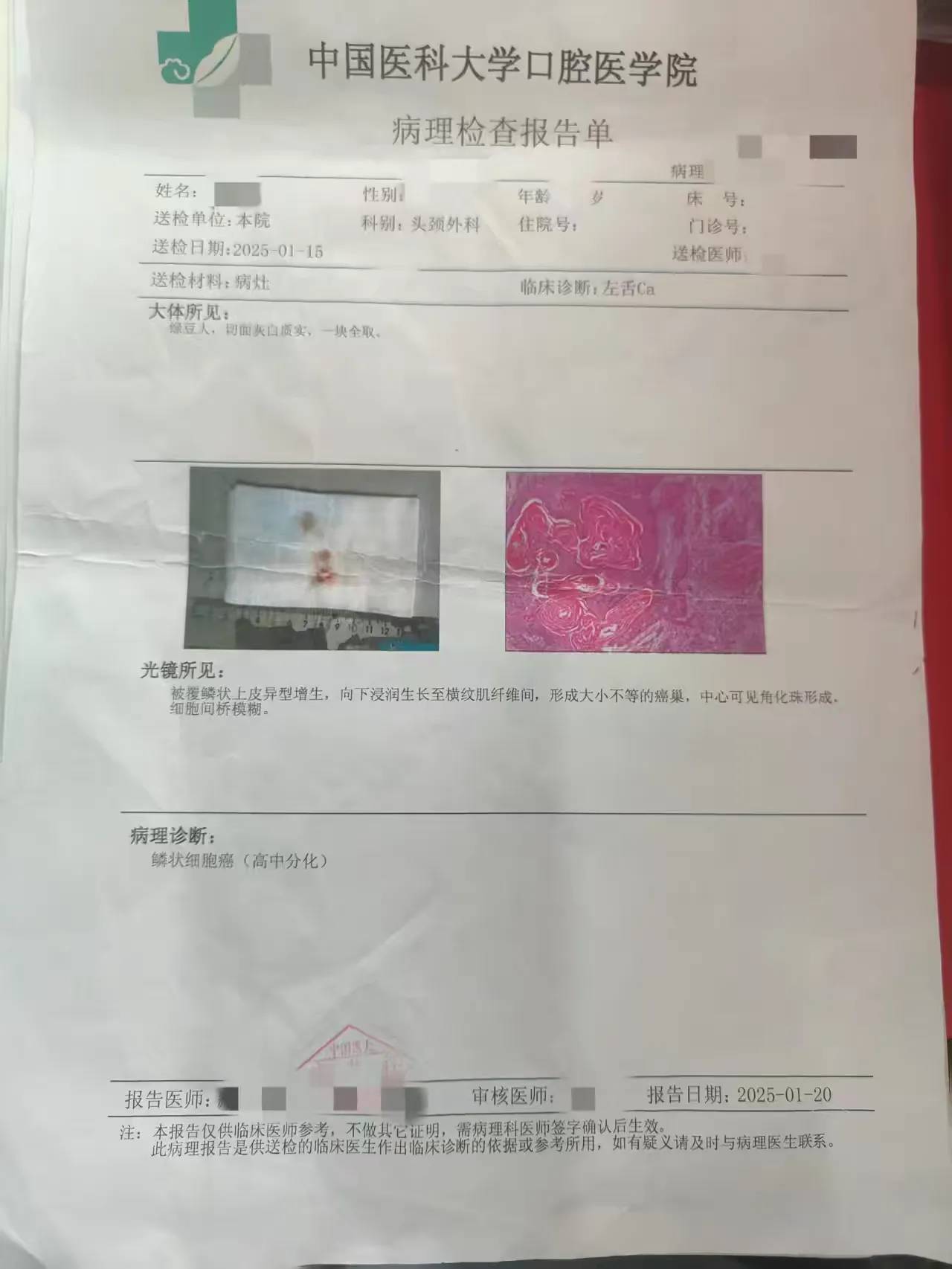 患者于2025年2月13日来我院就诊,15日由北京中科院肿瘤医院主任医师李正江教授,带领我院外科主任及医生,在全麻下行舌体部分切除,颈部淋巴结择区清扫术。